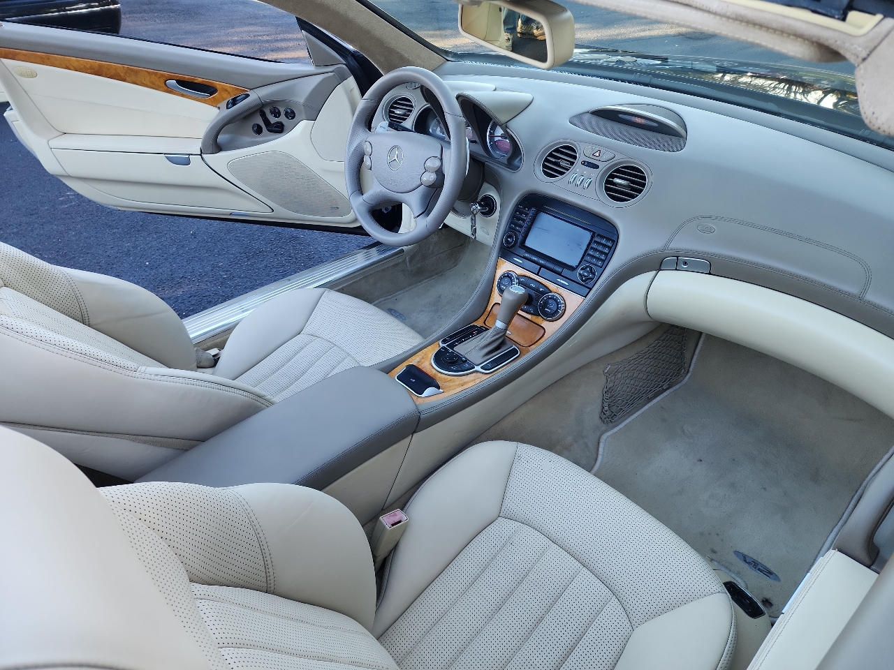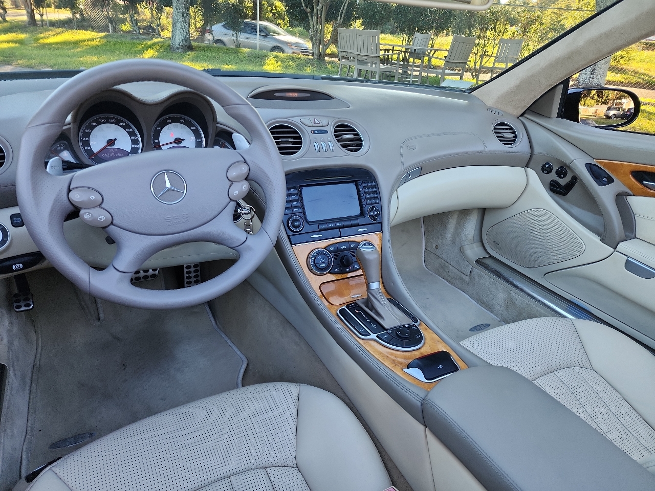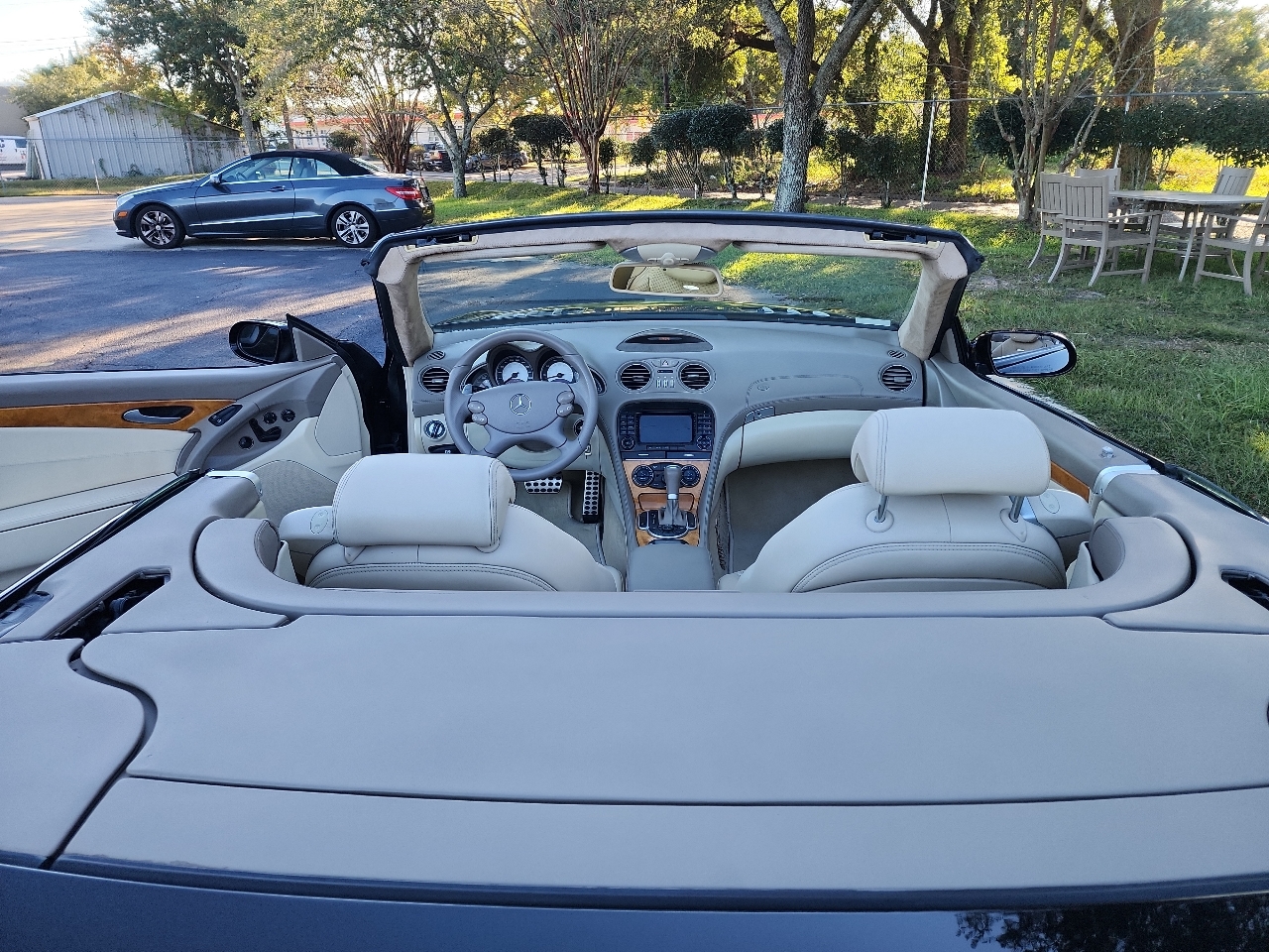 Cruise down the road in style and sophistication in this sleek Black 2007 Mercedes-Benz SL-Class. With a powerful engine purring under the hood, this luxury convertible effortlessly combines performance with elegance. The supple leather seats hug you in all the right places, while the genuine wood trim adds a touch of class to the interior. Let the wind tousle your hair as you enjoy the open road, the automatic load-leveling ensuring a smooth ride every time. Safety features like ABS brakes and traction control provide peace of mind, while the high-intensity discharge headlights illuminate the way ahead. You can even stay entertained with the premium sound system, complete with a subwoofer for that extra punch. Don't worry about the car's history - a Carfax report is available for your peace of mind. With its timeless design and luxurious features, this Mercedes-Benz SL-Class is sure to turn heads wherever you go. So why settle for ordinary when you can experience extraordinary in this remarkable convertible?
