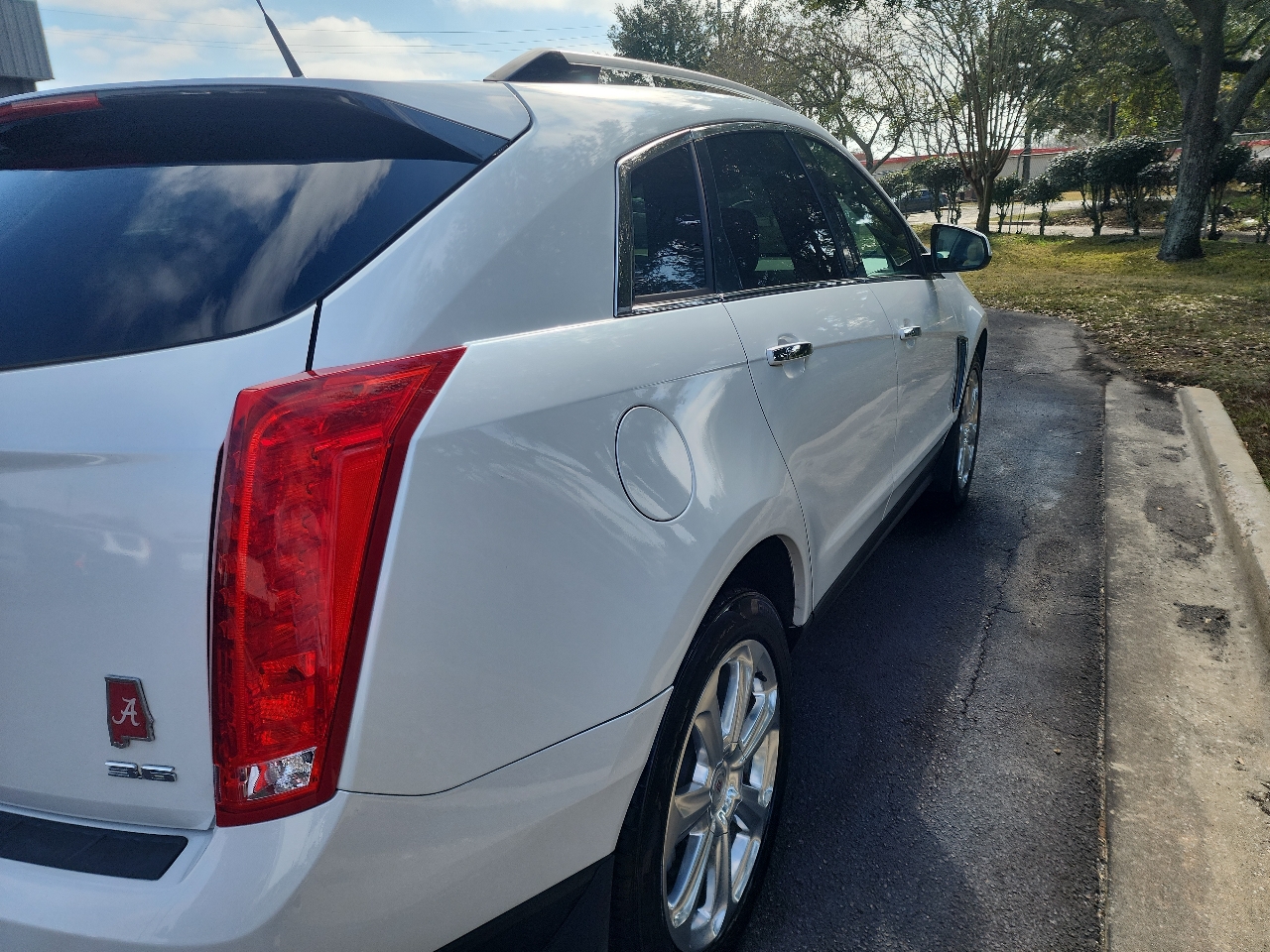Get ready to cruise in style with this 2014 Cadillac SRX! This sleek white beauty is packed with features to keep you safe and comfortable on the road, from the child safety door locks to the front heated seats. With navigation aid, finding your way has never been easier, while the rear spoiler adds a sporty touch to this luxurious ride. Whether you're taking a long road trip or just running errands around town, the adjustable foot pedals and leather seats will ensure a comfortable ride every time. Worried about the car's history? Rest assured, a Carfax report is available for your peace of mind. Don't miss out on the opportunity to drive off in this sophisticated and well-equipped Cadillac SRX - it's the perfect blend of luxury and practicality for any driving adventure!