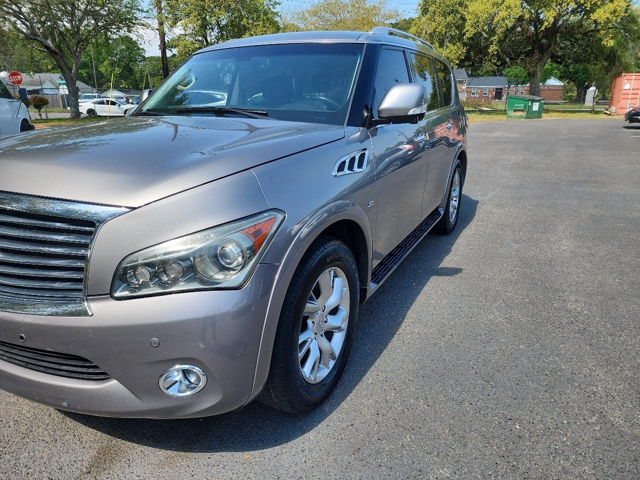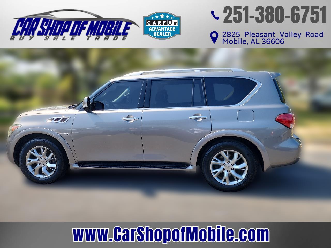 Get ready to hit the road in style with this sleek Silver 2014 Infiniti QX80! This luxurious SUV is the perfect combination of comfort, safety, and performance. With a spacious interior that boasts leather seats and genuine wood trim, you'll feel like royalty behind the wheel. Whether you're cruising around town or heading off the beaten path, the 4WD/AWD and Limited Slip Differential will ensure a smooth and stable ride.